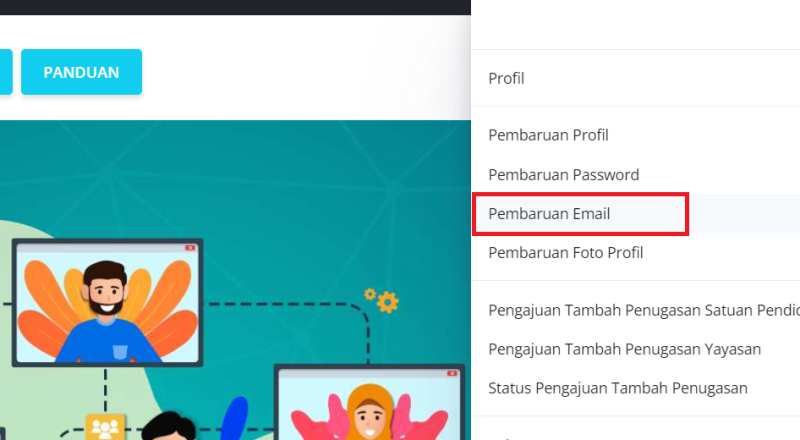 - Anda berhasil memperbarui email akun sdm yang sekaligus mengganti akun vervalSP, vervalPD, vervalPTK.