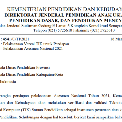 Adanya Asesmen Nasional tahun 2021 yang akan dilaksanakan pada bulan September sampai dengan Oktober 2021 sekolah wajib melakukan verval TIK. Pelaksanaan verval ini untuk kesiapan […]