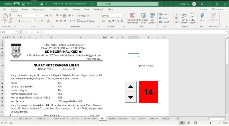 Download GRATIS Aplikasi Olah Nilai Kelulusan Kelas 6 SD