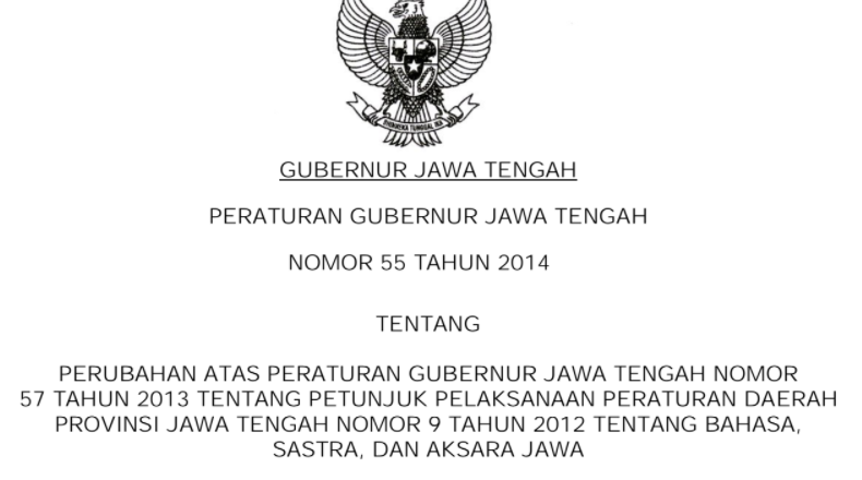 Adanya Peraturan Gubernur Jawa Tengah Tentang Bahasa, Sastra dan Aksara Jawa akan memudahkan satuan pendidikan untuk memedomani dalam membuat kurikulum muatan lokal bahasa daerah. Anda dapat mengunduh secara gratis pada laman ini. Untuk lebih lengkap sebagai dasar pelaksanaan kurikulum di sekolah, maka Anda perlu mengunduh dan mencetaknya sebagai bahan pertimbangan dasar kurikulum satuan pendidikan.
