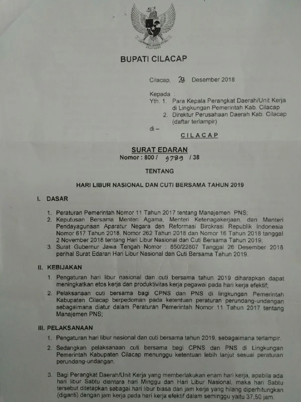 Seperti tertuang pada Surat Edaran Bupati Cilacap No. 800/9789/38 tentang Hari Libur Nasional dan Cuti Bersama tahun 2019 menegaskan bahwa para kepala perangkat daerah atau […]