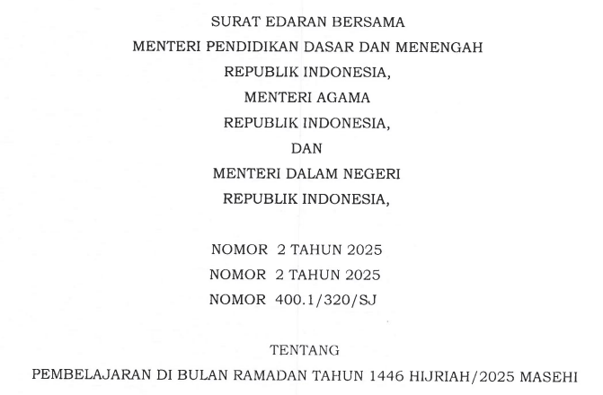 Demikian surat edaran libur Ramadhan 2025 yang telah ditandatangani tiga menteri lengkap dengan link download file PDF-nya.