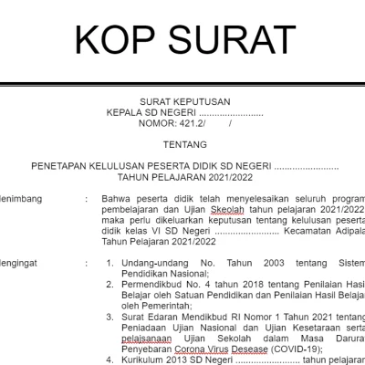 Satuan pendidikan tentunya akan mengeluarkan surat keputusan kapala sekolah tentang kelulusan. Baik pada jenjang TK/PAUD, SD, SMP, SMA, SMK atau sederajat. Surat keputusan tersebut menjadi […]